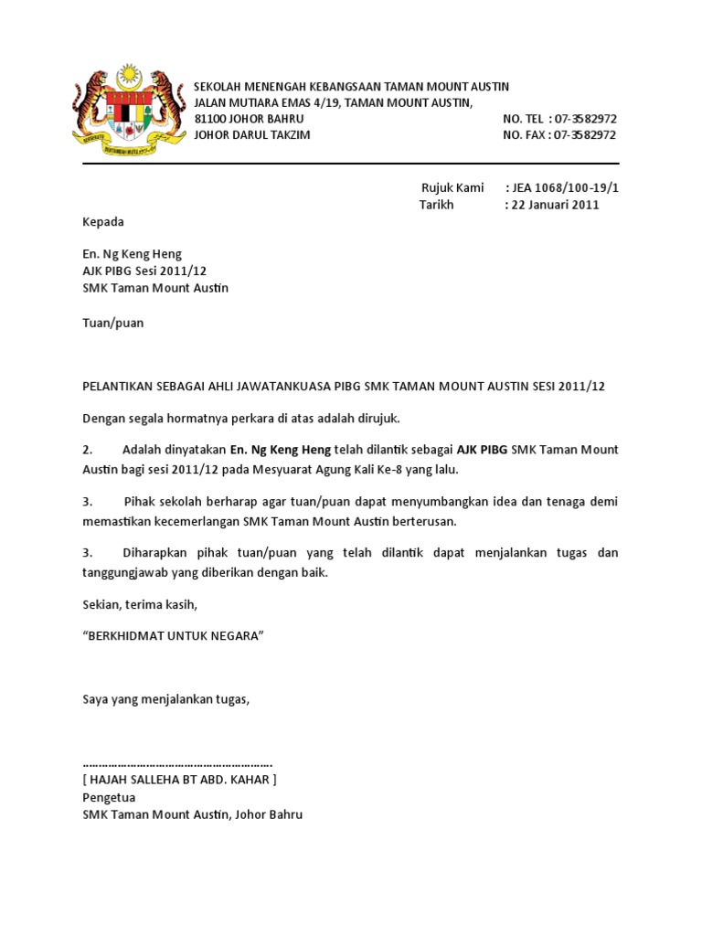 Surat Cara Lantikan Kontraktor Latest Letter Website